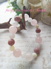 ローズクォーツ、フォスフォシデライト、クラック水晶などのブレス【内周15cm】